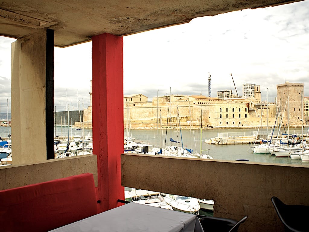 Le Rowing club is right above the water in a modernist, concrete building on the opposite side of MuCEM, with a panoramic view from the terrace and a rooftop bar. Style is contemporary casual, with good value brunch, lunch and dinner menus. From the main road take route descending towards the boat club.